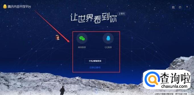 如下图,已经注册了的可以选择微信或QQ或手机/邮箱等方式登录。