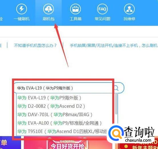 连接成功后,我们点击导航上的“刷机包”栏目进入,然后我们通过搜索的方式查找我们的手机型号固件。