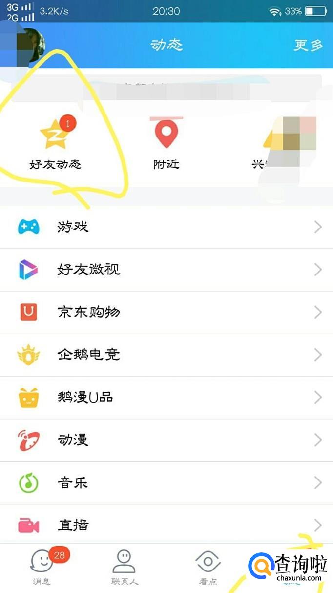 接下来,大家点击“动态”主页面再进入“好友动态”
