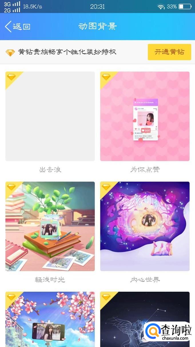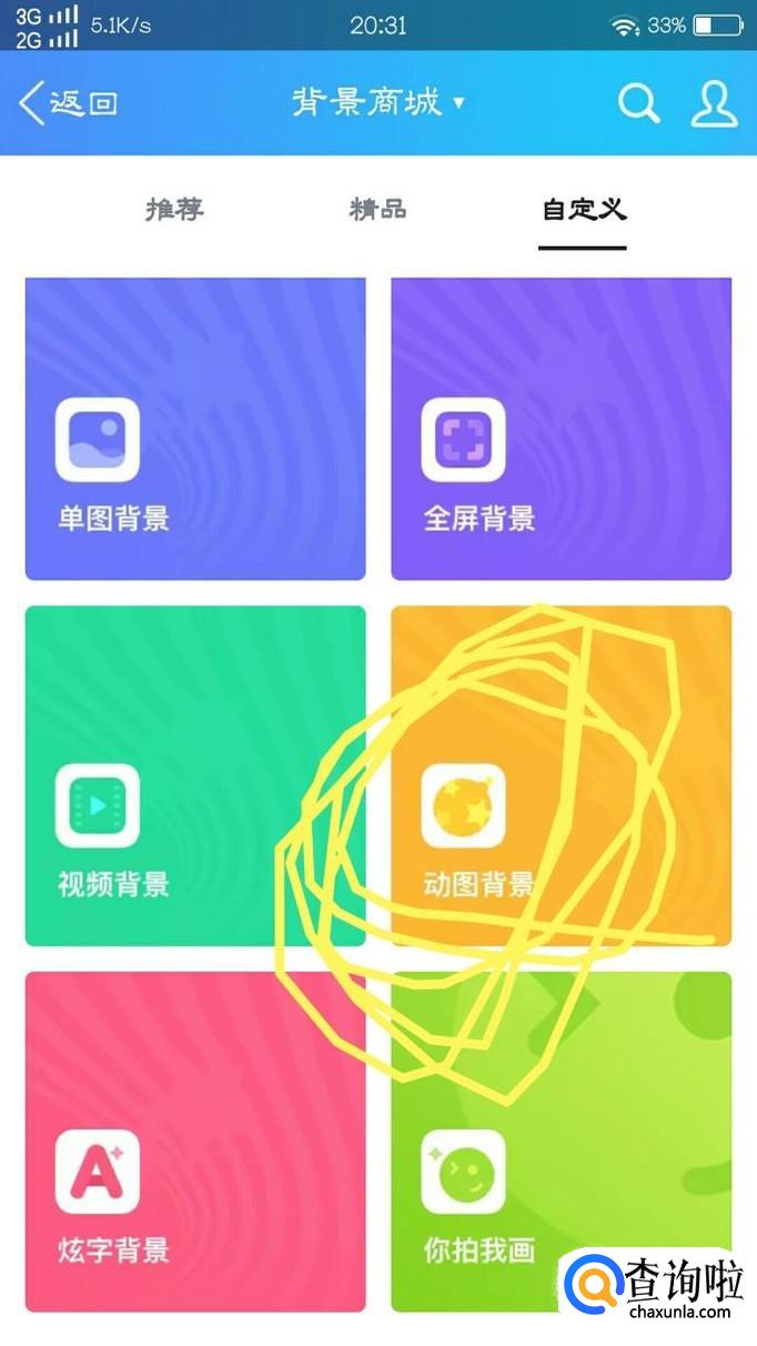 最后,大家可以选择“动图背景,单图背景,全图背景”等,我们点击“动图背景”进入 选择自己喜欢的动图,并设置即可