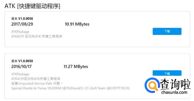 下滑网页,找到“ATK [快捷键驱动程序]”,点击下载并安装驱动