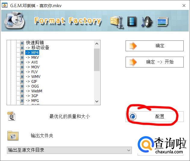 还可以调整转换视频文件的质量大小,点击如下图的“配置”。