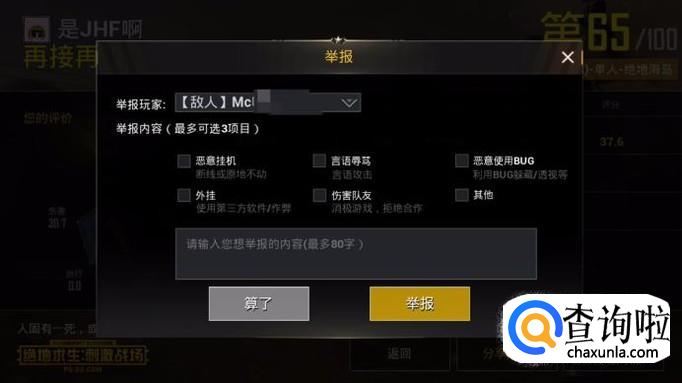 在弹出的举报页面中,选择要举报的玩家和内容即可。