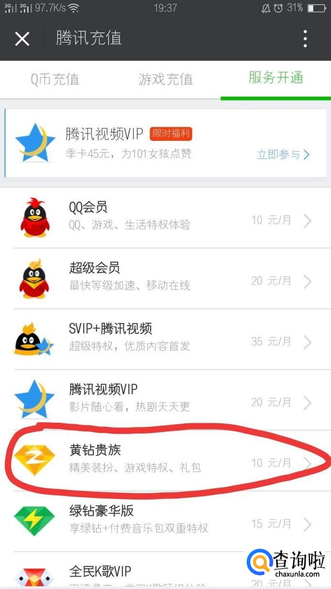 在腾讯充值中的服务充值中找到QQ黄钻,然后进行下一个操作。