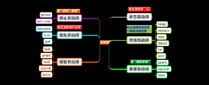 常见系动词有be动词(am,is,are)、感官动词(feel,look,smell,sound,taste,seem)、“变得”词(get,become,turn,grow)、“保持”(remain)。