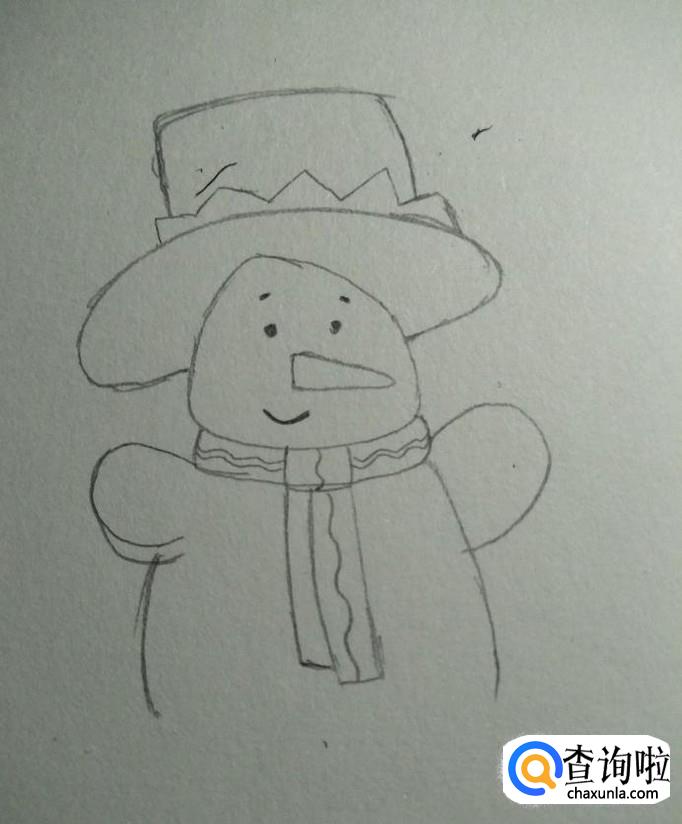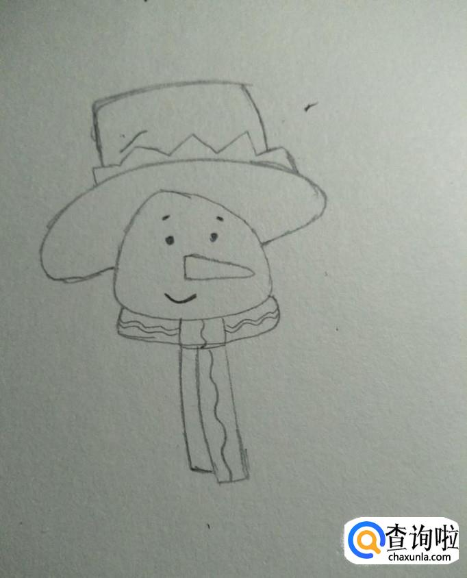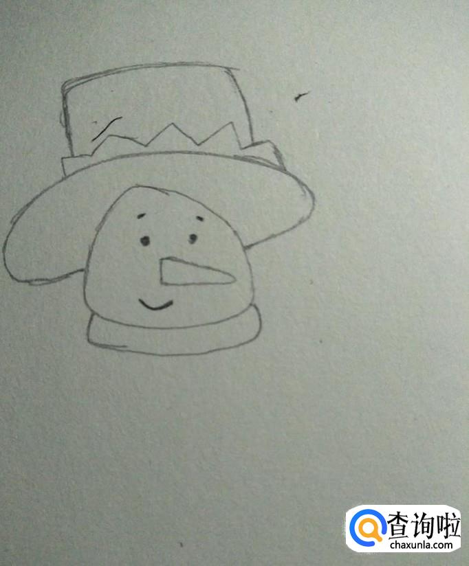 从雪人脸部的中上部位置开始画一个帽子轮廓,如下图所示
