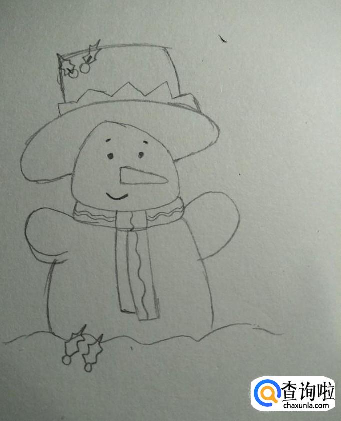 从围巾端口开始,我们画出雪人的小手,再从手端画出雪人的身体,如下图所示。