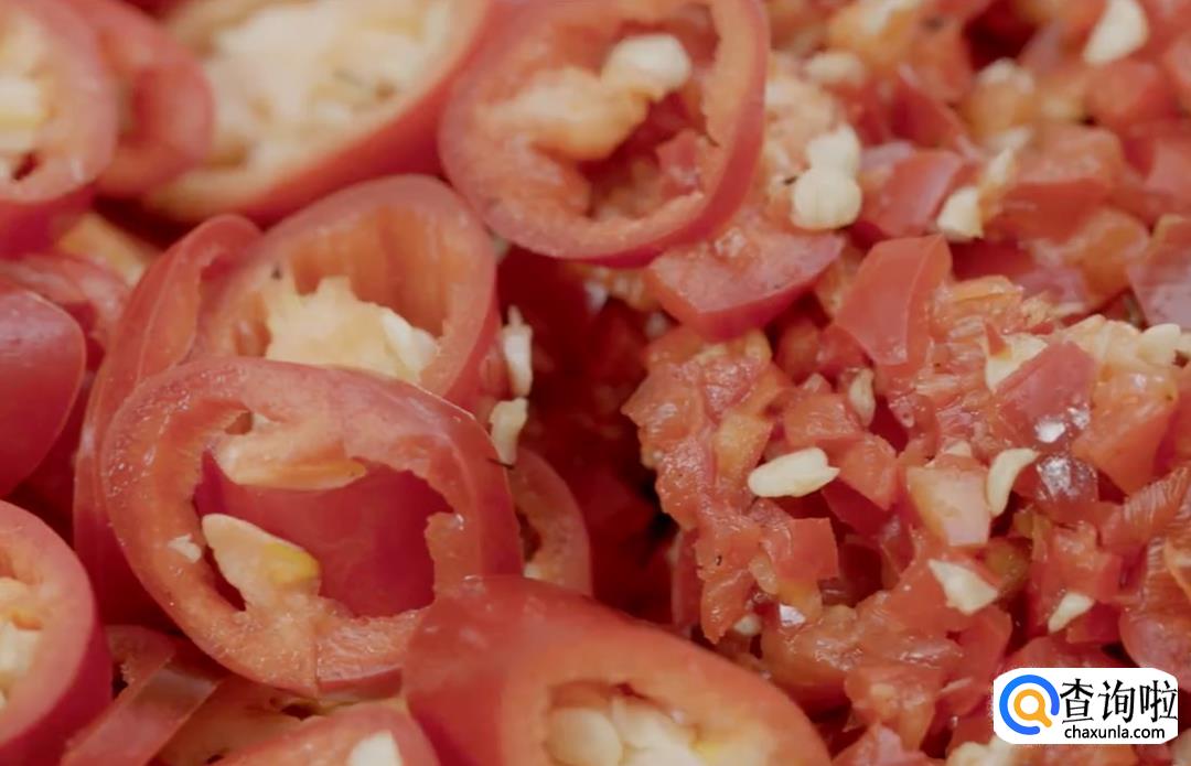把辣椒切小圈,再取其中一半剁细,这样既保证了味道,腌过之后完整的椒圈也很漂亮。