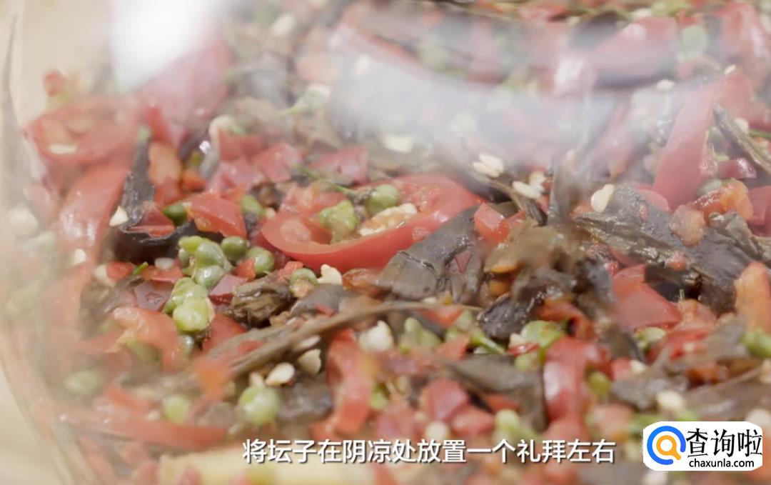 将坛子在阴凉处放置一个礼拜左右,这道佐餐小菜就腌好了。