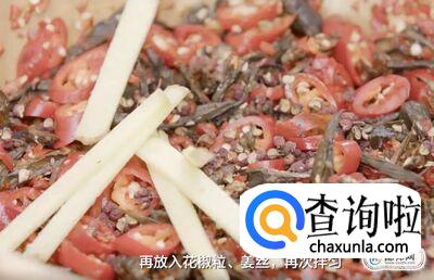 再放入花椒粒、姜丝,再次拌匀。
