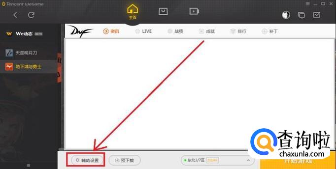 在地下城与勇士的平台界面中,点击下方的“辅助设置”选项。
