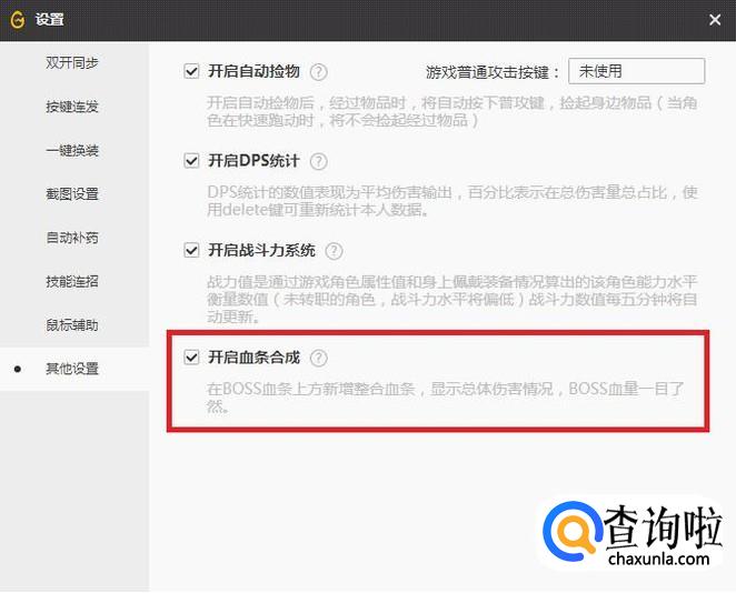 在“开启血条合成”的选项前面的方框内打“√”,即可完成对领主血量条的整合设置。