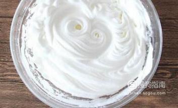 一直顺着同一方向搅打直到蛋清光滑雪白,打发成软性泡沫此时状态呈弯钩状,象只漂亮的白天鹅。