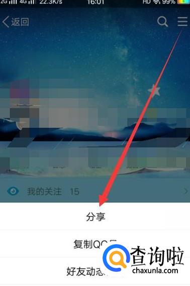 进入之后,点击图示位置的三道横杠,然后选择“分享”,如图所示。