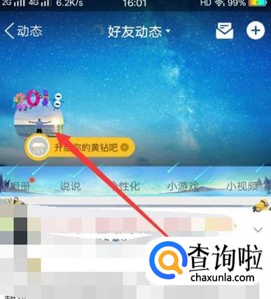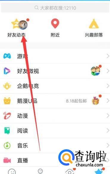 进入之后,在动态页面,点击“好友动态”,如图所示。