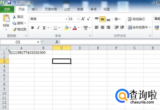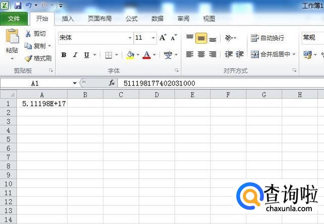 首先打开excel,输入身份证号,会出现以下状况,无法显示完全
