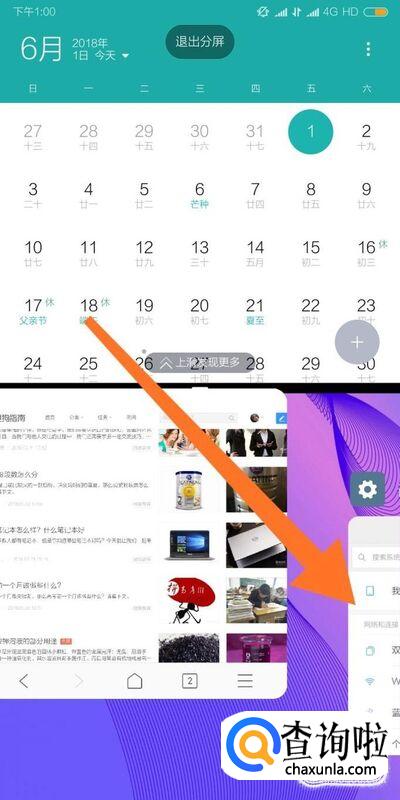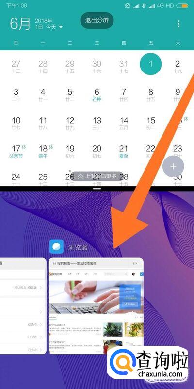 在分屏模式下,上滑桌面还可以切换分屏运行的软件和选择退出分屏模式。