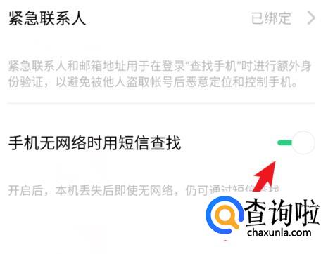 开启“手机无网络时短信查找”