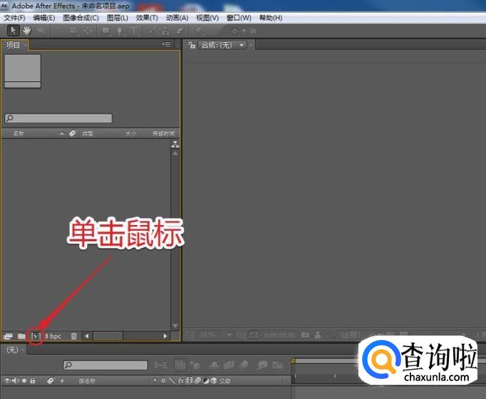 在项目面板上点击“新建合成”图标,快速的建立一个新的文档。