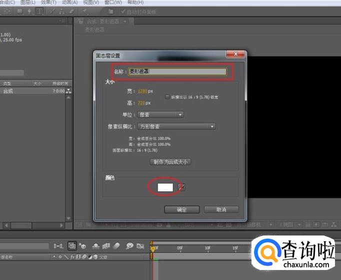 在弹出的固态层设置,将名称设为:菱形遮罩,颜色更改为:白色。