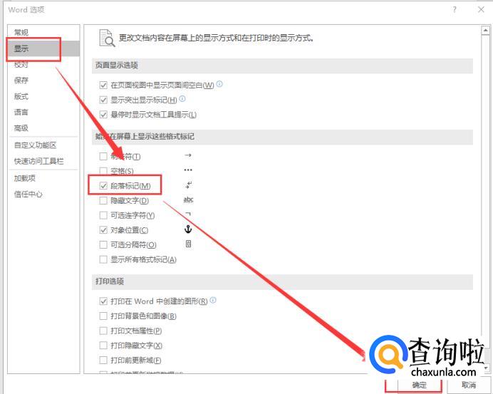 选择显示,勾选段落标记,然后确定。
