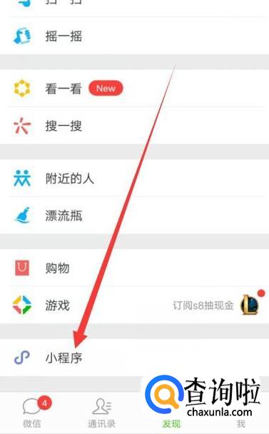 打开之后,找到小程序,点击并进入,如图所示。