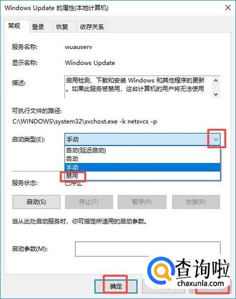 弹出的界面,我们点击启动类型边上的下拉箭头,弹出的界面,我们点击禁用,之后,我们点击应用,然后点击确定就可以了。