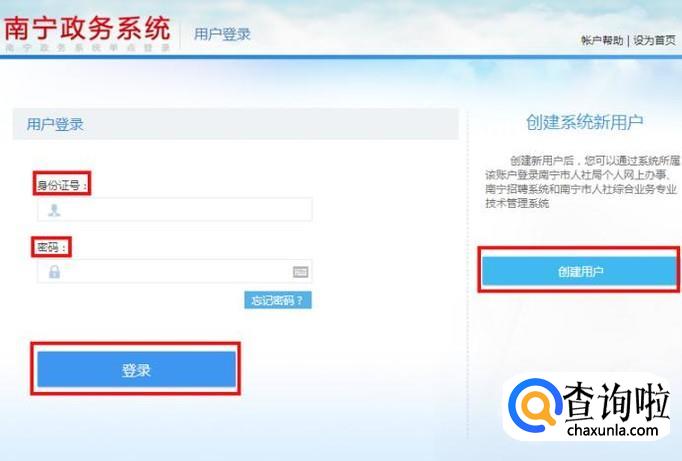 首次登录的需要“创建用户”,创建好以后输入身份证号和密码登录即可;
