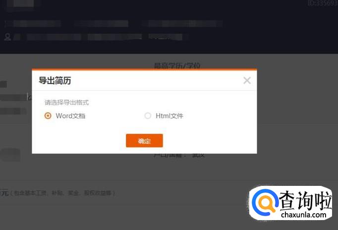 点击这里的“导出”按钮,我们看到有两种形式可以把简历导出,一种是word文档形式,一种是html网页形式。我们任意选择就可以。