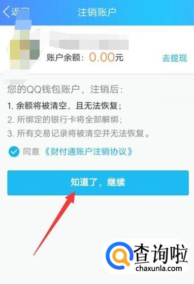进入之后,点击“知道了,继续”,即可注销账户,如图所示。