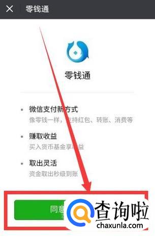 进入微信零钱通的开通页面,点击“同意协议并开通”即可将其开通,如图所示。
