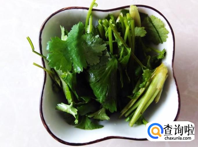香菜清洗干净,然后切成几段。