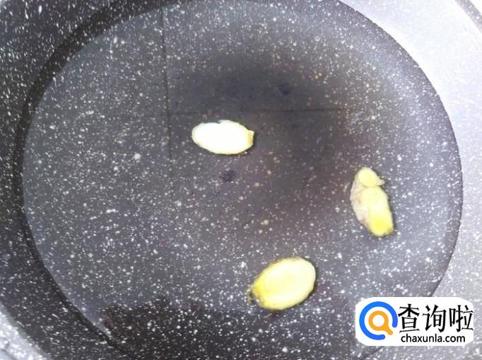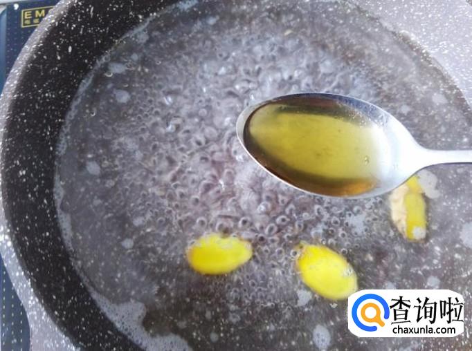 锅装适量的水加几片姜煮沸,然后加1勺香油进去。