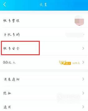 在设置界面选择“账号安全”,如下图所示。