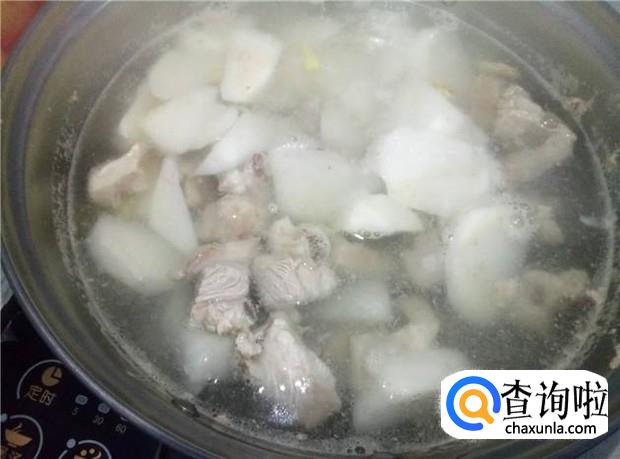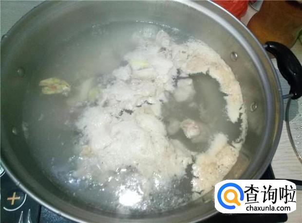 排骨汤煮开之后,表面会浮起一层雪泡沫,要先撇干净。