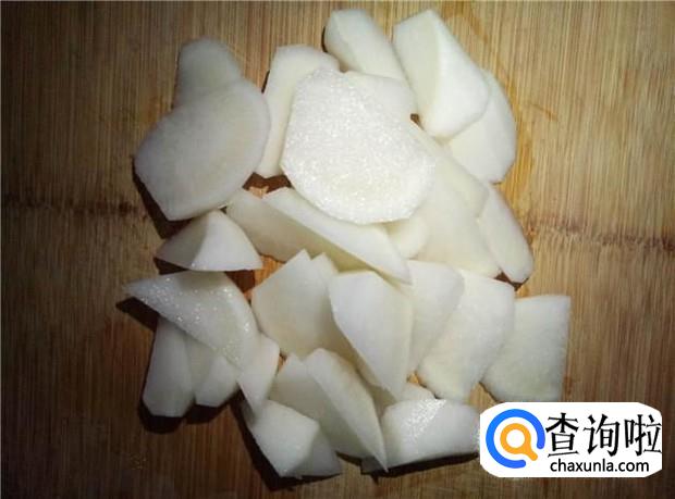 白萝卜削皮,切成滚刀形状备用。
