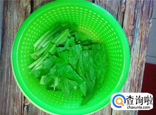 油麦菜清洗干净,摘成小段,备用。