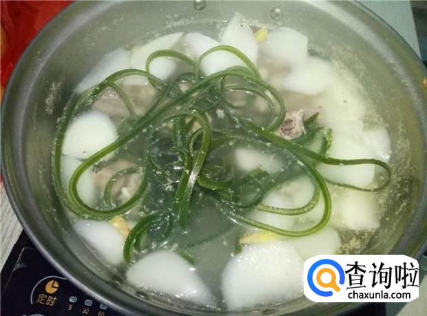 然后再加入海带丝煮。