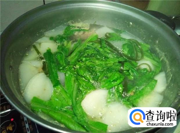 最后加入青菜,青菜烫一下就熟的了,就可以开吃啦。