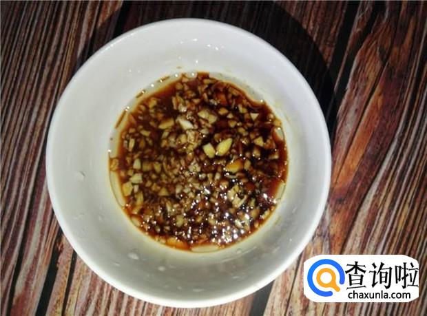 然后,先去准备调味料,姜和蒜头剁碎,加入适量的盐、酱油和花生油,搅拌均匀。