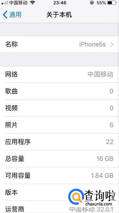 最后我们能够看到手机的具体型号、内存还有可用内存等等。