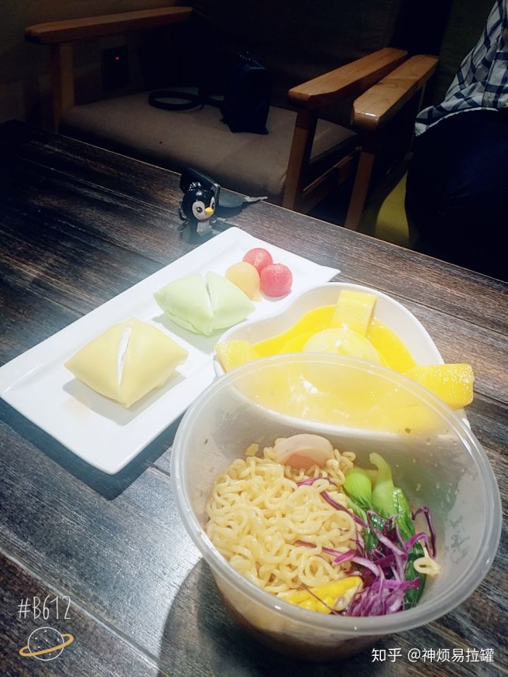 最后呢?我们微笑着跟老板道别,拎上我们第三盒泡面去附近找了唯一的可以坐下来的甜品店,为了能够心安理得的在店里坐下来我们又买了比泡面还踏马贵的甜品然后把这盒泡面给吃了。。