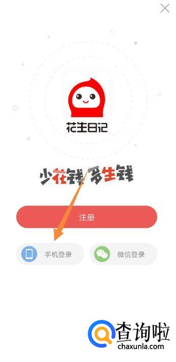 点击“花生日记”APP,选择“手机登录”,再点击“本机号码一键登录”可以不用注册,直接登录到APP。