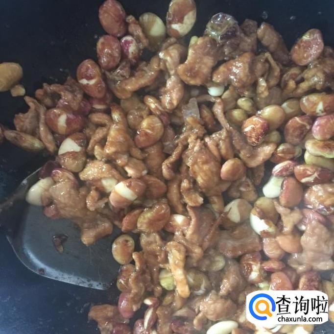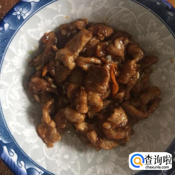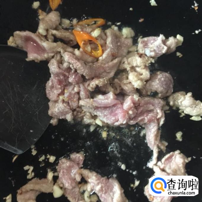 然后把瘦肉倒入锅中翻炒五分钟起锅备用,如下图所示。