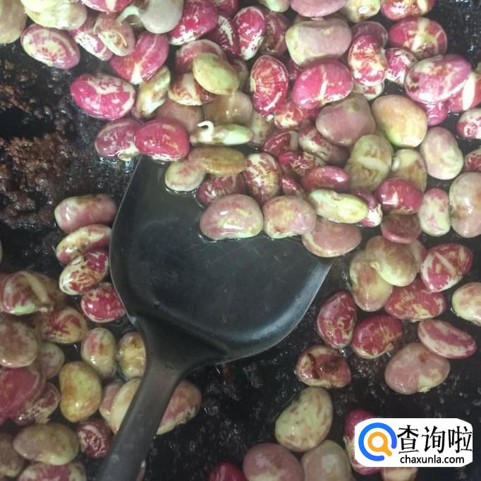 然后把蚕豆倒入锅中翻炒五分钟,如下图所示。炒蚕豆的时候一定要开大火。