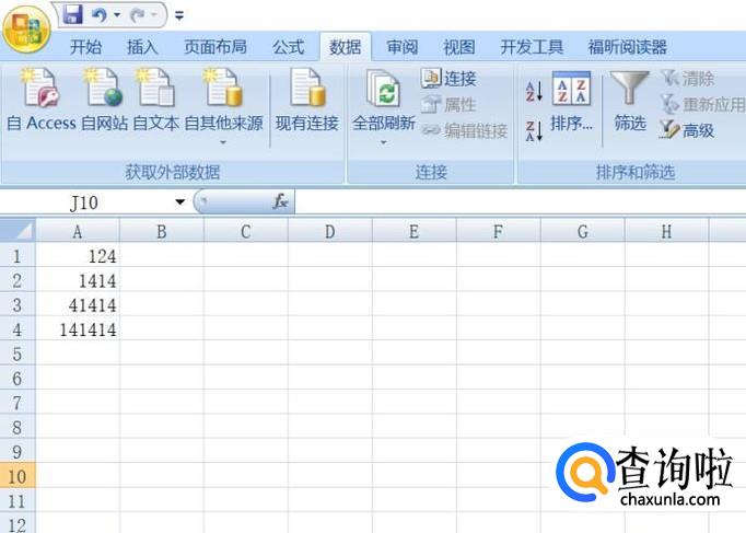 然后我们在表格中输入一组数据,如图所示;