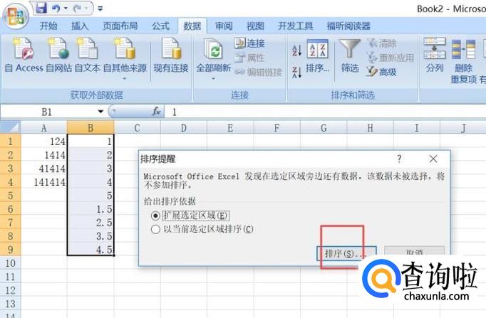 然后我们点击数据,点击排序;
