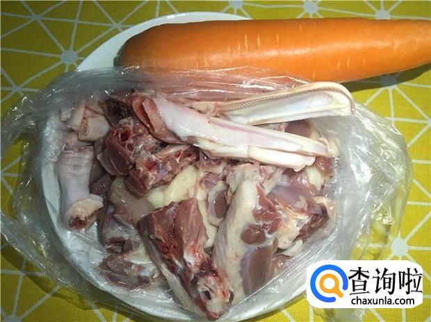 把食材准备好,买了半边新鲜的水鸭,红萝卜一根。贵一点的鸭子,就没有鸭的腥味,不要买太便宜的鸭子。