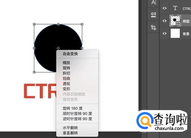 这里是重点了,进入自由变换模式的话,快捷键是CTRL+T,进入之后形状四周会出现框。