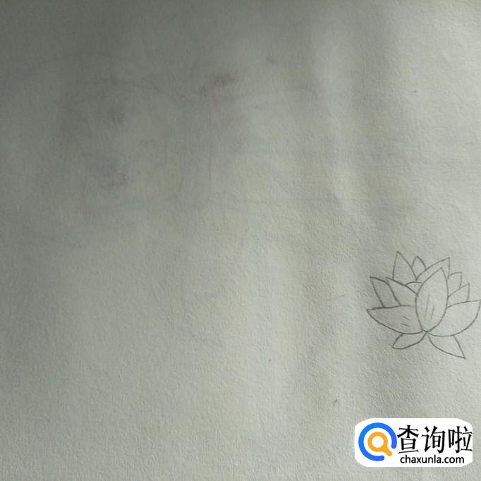 用铅笔在素描本的右下角画出一朵小小的莲花,形状依据大家的爱好,如果平时大家经常画莲花的话,如果大家不会画也可以根据小编的笔法来描绘,总之,随意一点就好